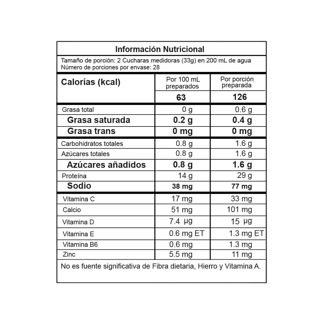 Mezclar 2 cucharas (33g) del producto en 180 ml de agua, agítese hasta obtener un producto homogéneo, consúmase una vez preparado.